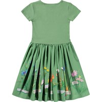 Green short-sleeved dress made of soft organic cotton. The top has a close-fit made of ribbed jersey, and the soft poplin skirt has a sweet print of plants and summer flowers. It is a comfortable and festive dress with plenty of room for movement.