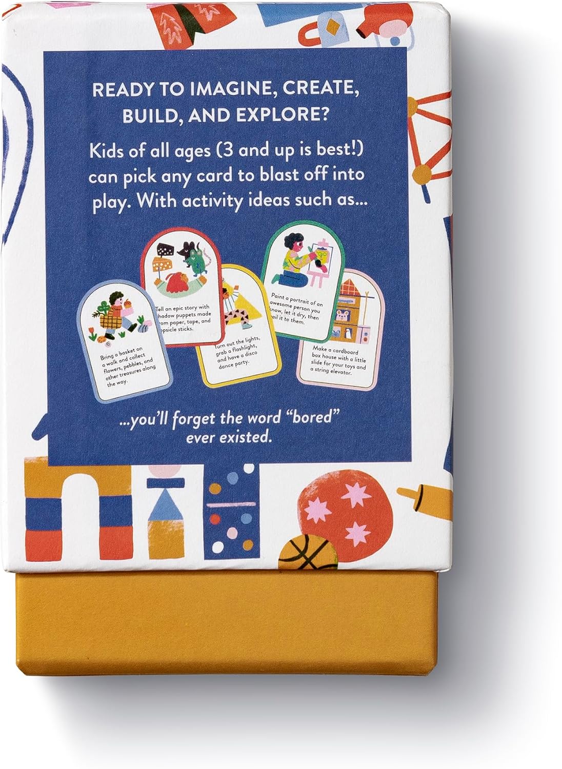 - ENCOURAGE SCREEN-FREE TIME: Boredom doesn’t have a chance with these fun activity cards for kids. Use them during rainy days, spring break, playdates, or when the babysitter is over. Each card is a kernel of an idea to fill an afternoon with play and imagination.